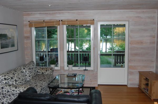 Skogsstugan har en härlig sjöutsiktSkogsstugan bygge av altan