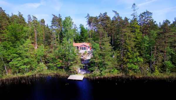 Skogsstugan har en härlig sjöutsiktSkogsstugan bygge av altan