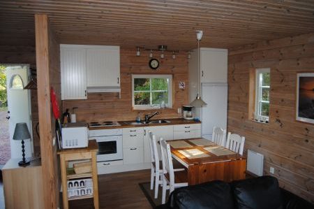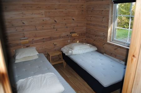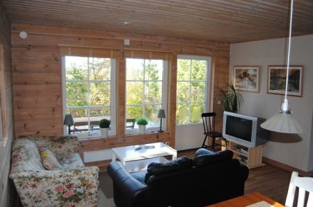 There are 2 bedrooms with 5 beds, two regular beds in one bedroom and in the other bedroom there is a bed and a bunk bed. At the back of the house with exit from the living room there is a lovely patio with garden furniture, and a barbecue hut.