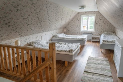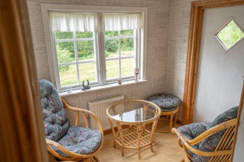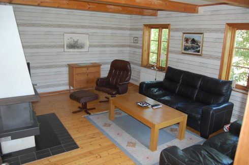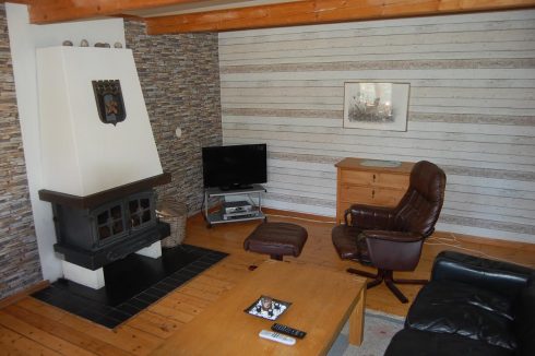 There are 2 bedrooms upstairs with 6 beds, in the living room there is a fireplace with satellite TV, the room connects to a small pretty veranda.