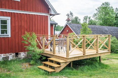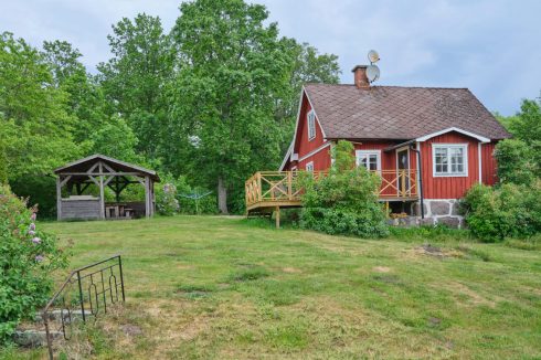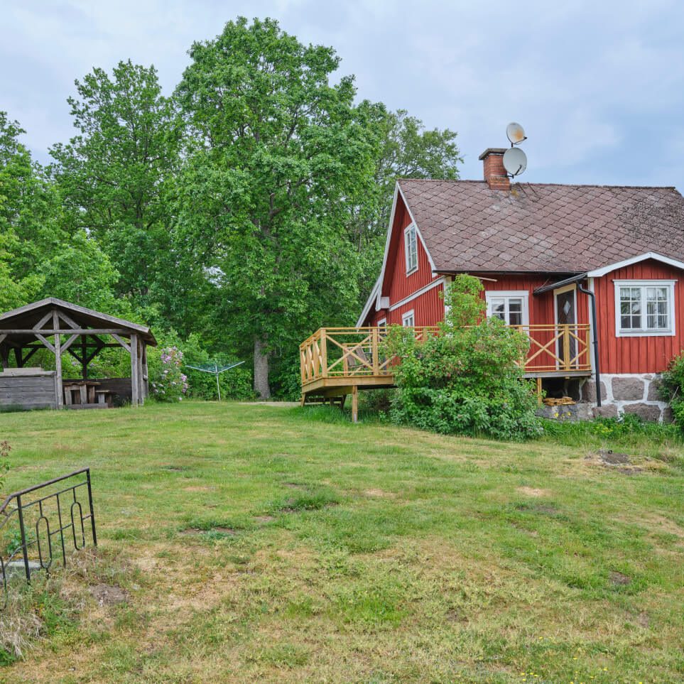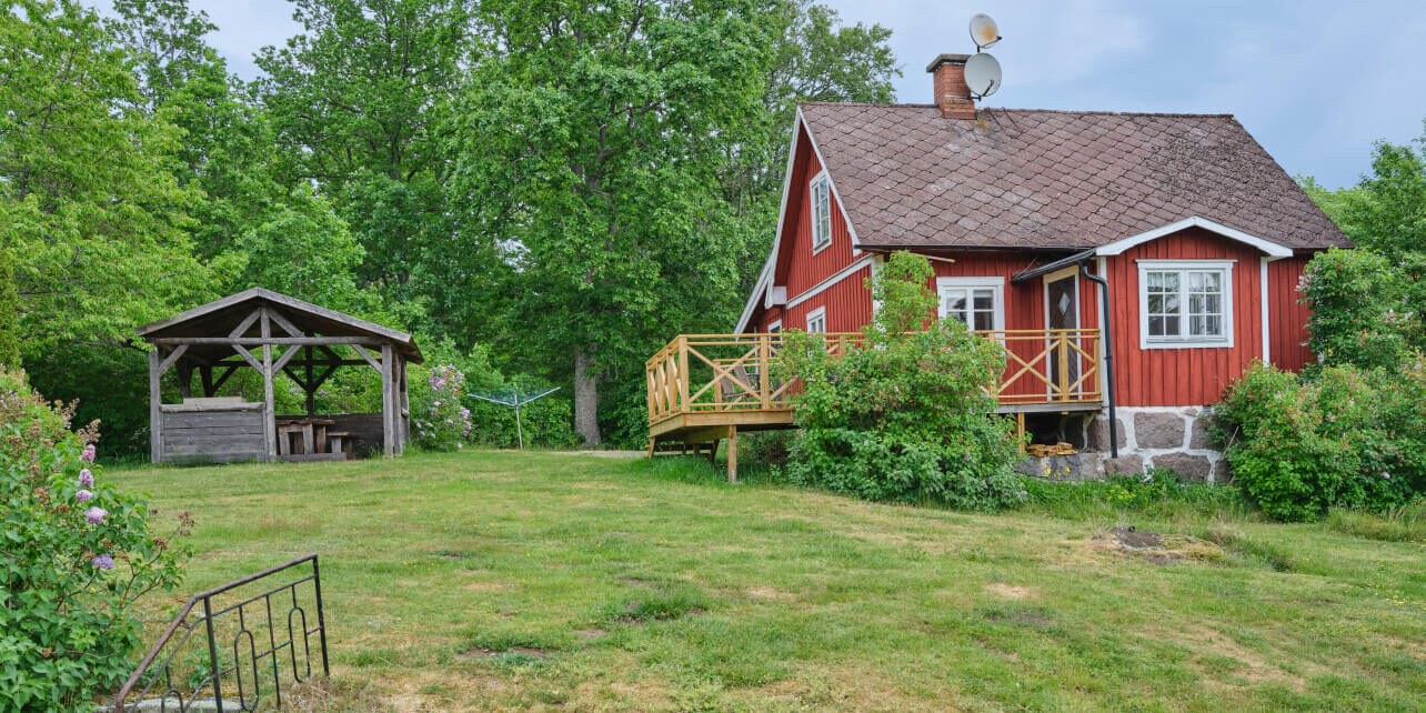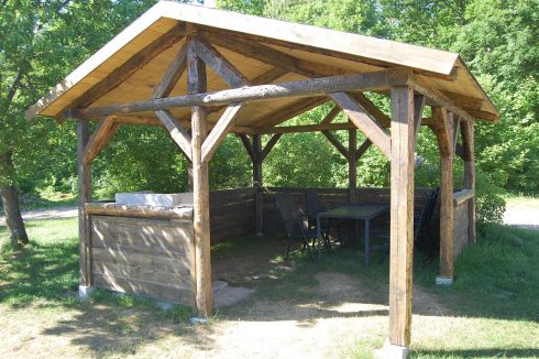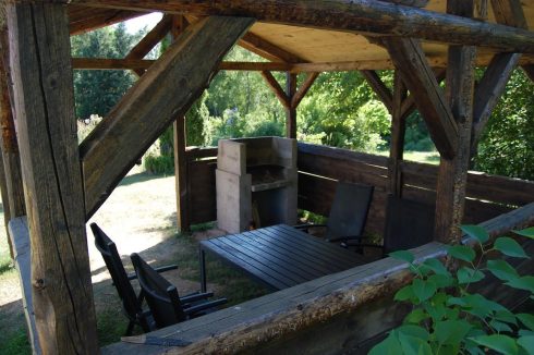 Private garden with garden furniture with barbecue hut, which then borders up to the woods where silence reigns.